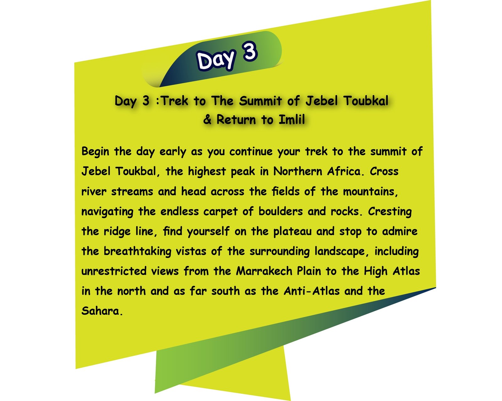 Enjoy a breathtaking 3-day journey through the beautiful Moroccan landscape to the summit of Jebel Toukbal, the highest mountain peak in Northern Africa. Stop at sights along the way, including the village of Imlil and the shrine of Sidi Chamarouch.