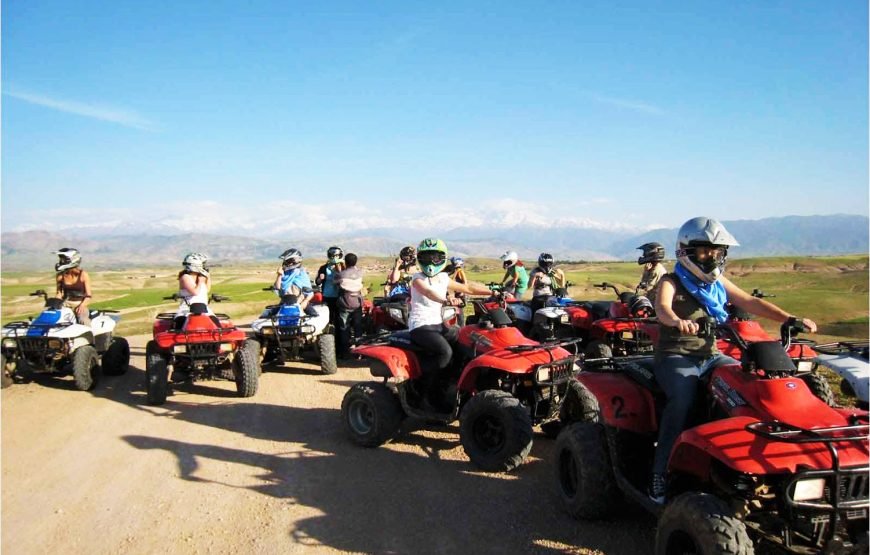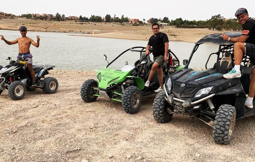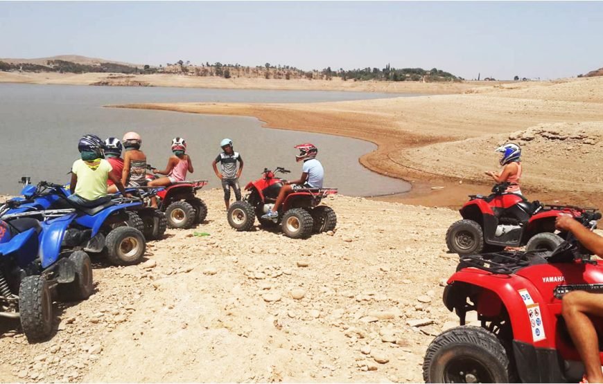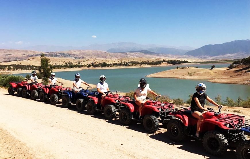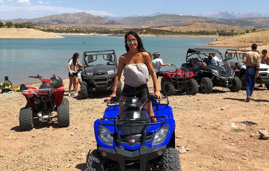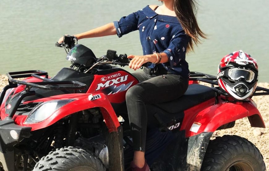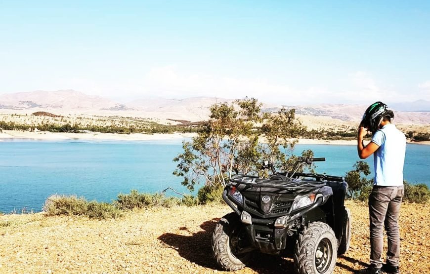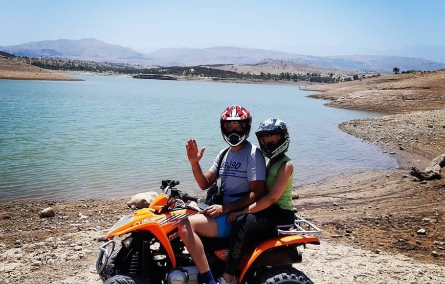You can choose to join either the morning or afternoon session. Be collected from your accommodation and be driven in a comfortable car by a professional driver. Along the road, see the beautiful harmonious nature before you arrive at Lalla Takerkoust, which is 32 km far from Marrakech.  Listen to a briefing on the safe use of the quads then receive your equipment. Begin your tour and leave Lalla Takerkoust towards the wild valley of turtles and desert plateau, rushing into the High Atlas oasis and wadis. Enjoy a breath of fresh air in the Atlas region. Discover small Berber villages and take the opportunity to meet the wonderful local people. Stop on the Kik Plateau to see an extraordinary panorama view over the artificial lake, which is 7 kilometers long. The blue waters spread until the foot of the Atlas. Here, you can enjoy a delicious mint tea while soaking up the view. Return along another track then be collected for the drive back to your accommodation.