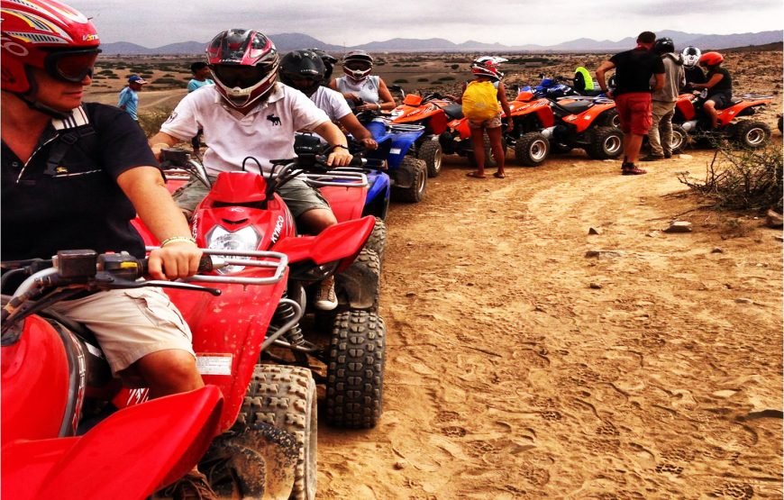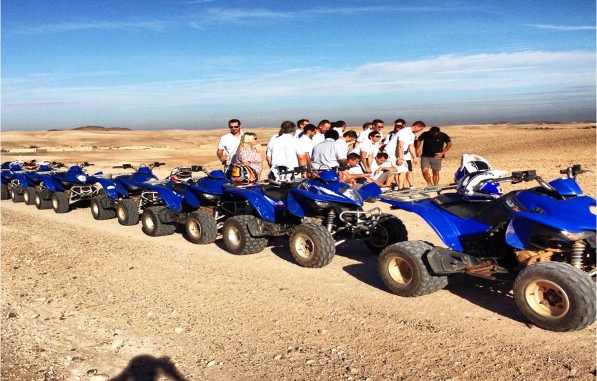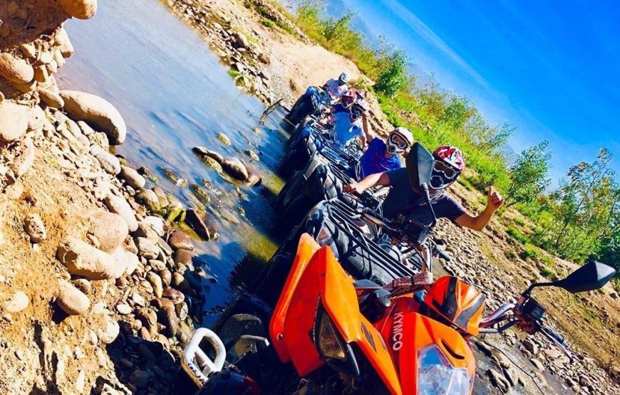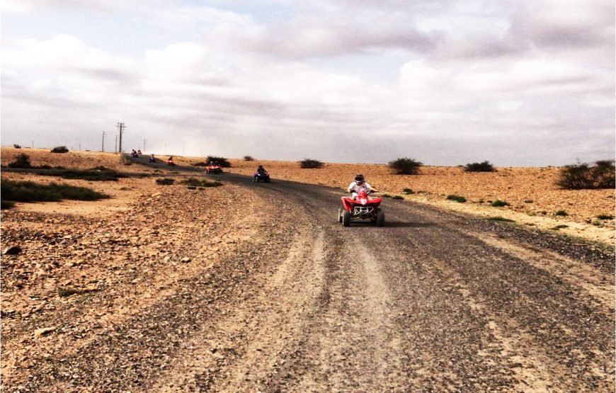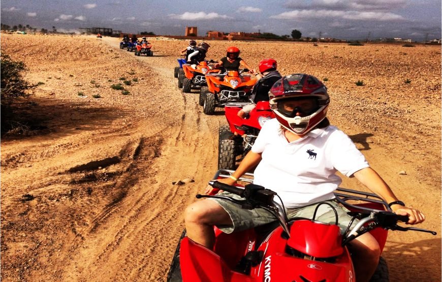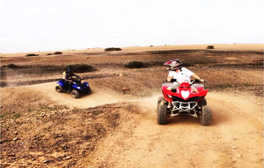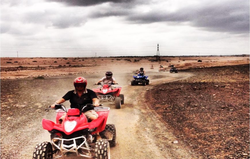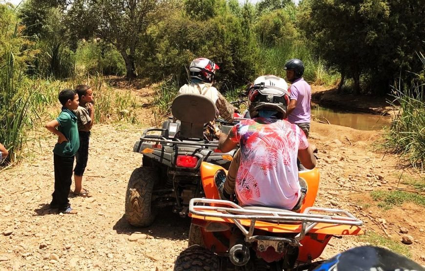 You can choose to join either the morning or afternoon session. Be collected from your accommodation and be driven in a comfortable car by a professional driver. Along the road, see the beautiful harmonious nature before you arrive at Lalla Takerkoust, which is 32 km far from Marrakech.  Listen to a briefing on the safe use of the quads then receive your equipment. Begin your tour and leave Lalla Takerkoust towards the wild valley of turtles and desert plateau, rushing into the High Atlas oasis and wadis. Enjoy a breath of fresh air in the Atlas region. Discover small Berber villages and take the opportunity to meet the wonderful local people. Stop on the Kik Plateau to see an extraordinary panorama view over the artificial lake, which is 7 kilometers long. The blue waters spread until the foot of the Atlas. Here, you can enjoy a delicious mint tea while soaking up the view. Return along another track then be collected for the drive back to your accommodation.