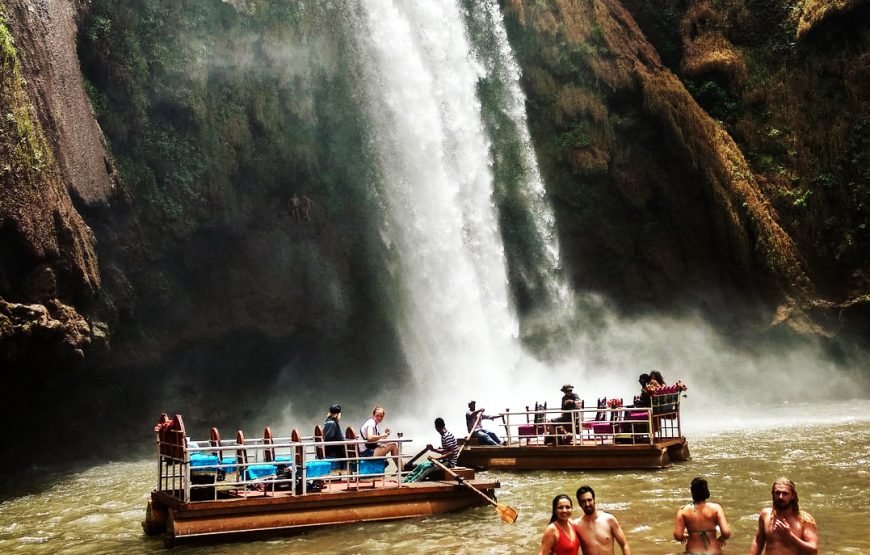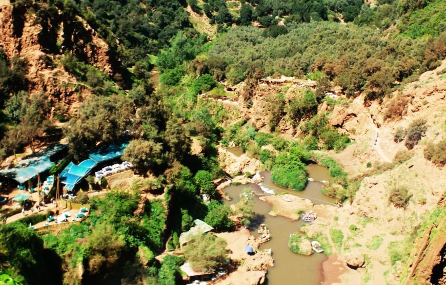 Considered one of the most remarkable natural attractions of the High Moroccan Central Atlas, the Ouzoud waterfalls are located northeast of Marrakech at about 160 km. On the way, the view of green valleys, mills, vast fields of olive, apricot, and fig trees and the gorges of Oued El Abid (the Silver River) will dazzle you and offer you a relaxing climate.