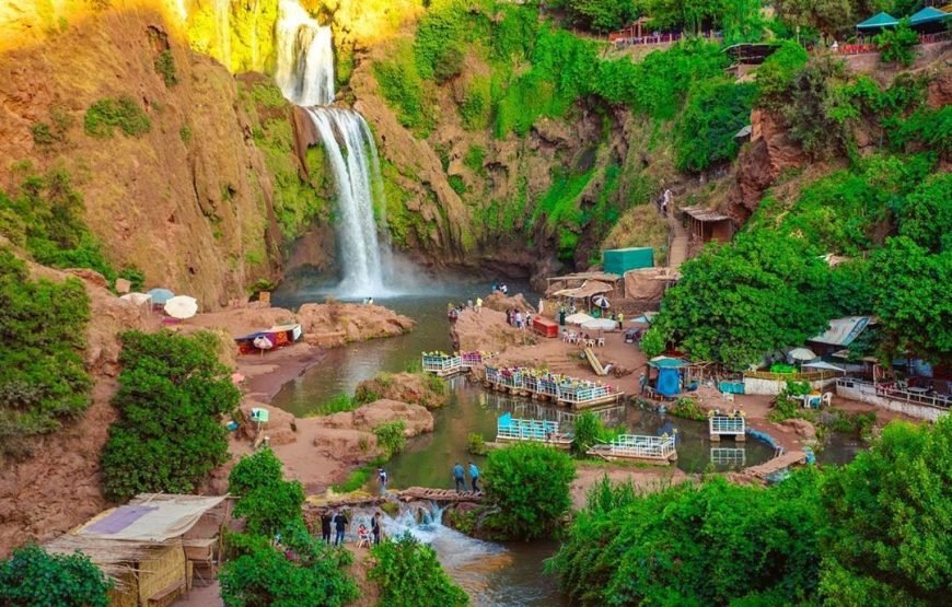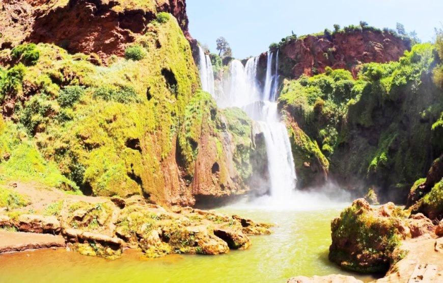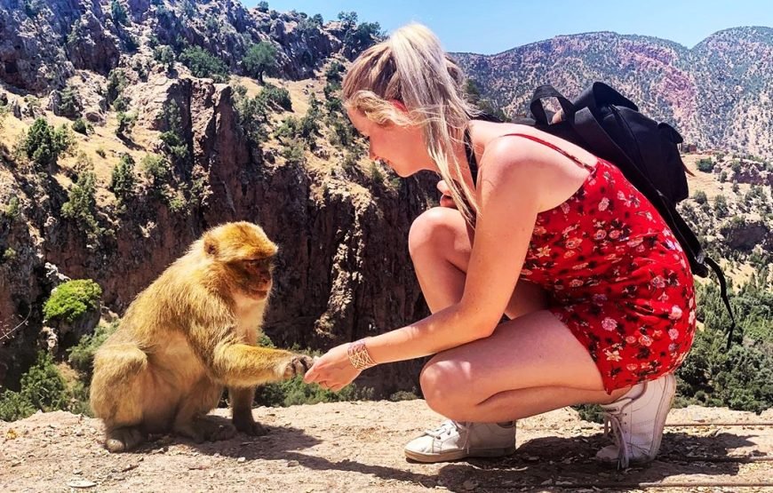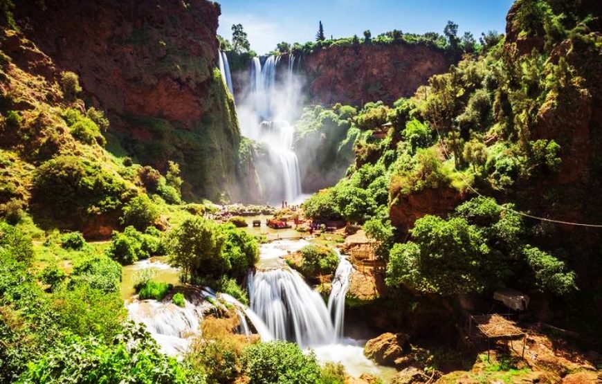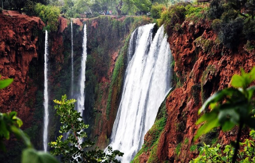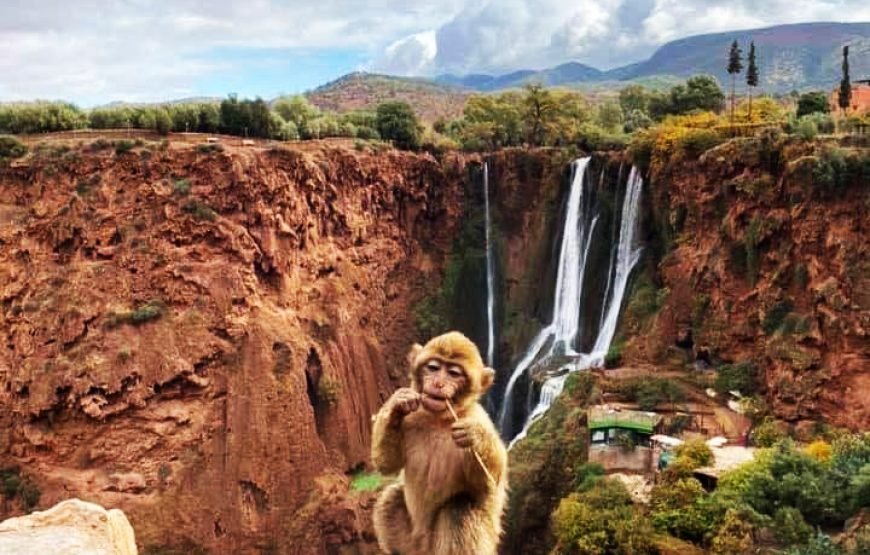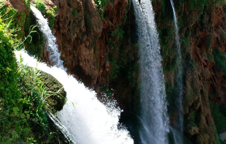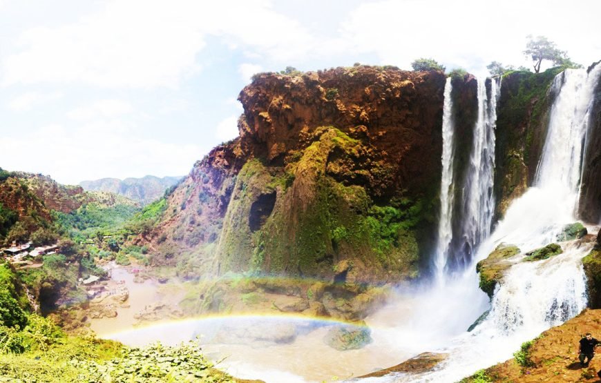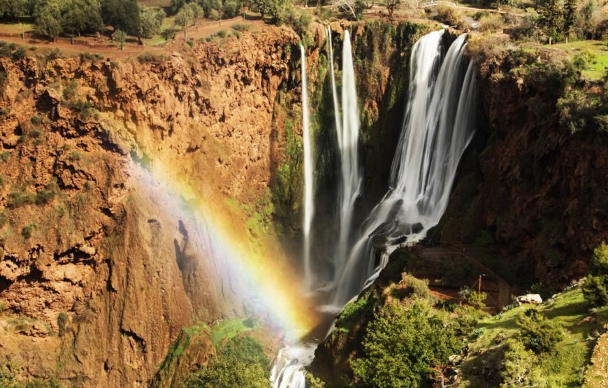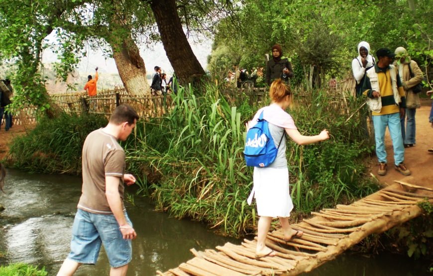 The road is direct to one place called Ouzoud with a stop in a gas station to get some rest and have a snack before you take the road again and see other fascinating landscapes. When you arrive at the waterfall, approximately 330 feet, be guided with our local guide who will make it for you to pass among the olive-trees with the foot of the cascades. This path offers on the falls of the points of increasingly brought closer sights. Which is an opportunity to take some great pictures in this natural wonder. Continue to discover more sights and also enjoy the refreshment of the water coming down from the top of the mountain. You can have lunch at your leisure at one of the local cafés & restaurants serving delicious food next to the stream, as you admire views of the waterfalls and have some beautiful pictures as a souvenir of this wonderful place. The splendid waterfalls of around 110m in height and the marvelous landscape populated by birds and monkeys offer a pleasant place for relaxation. Perched on the mountains of the High Central Atlas, at an altitude of 1480 m. Create a spectacular rainbow. You can explore this beautiful site at your own pace on a hike through the olive groves.