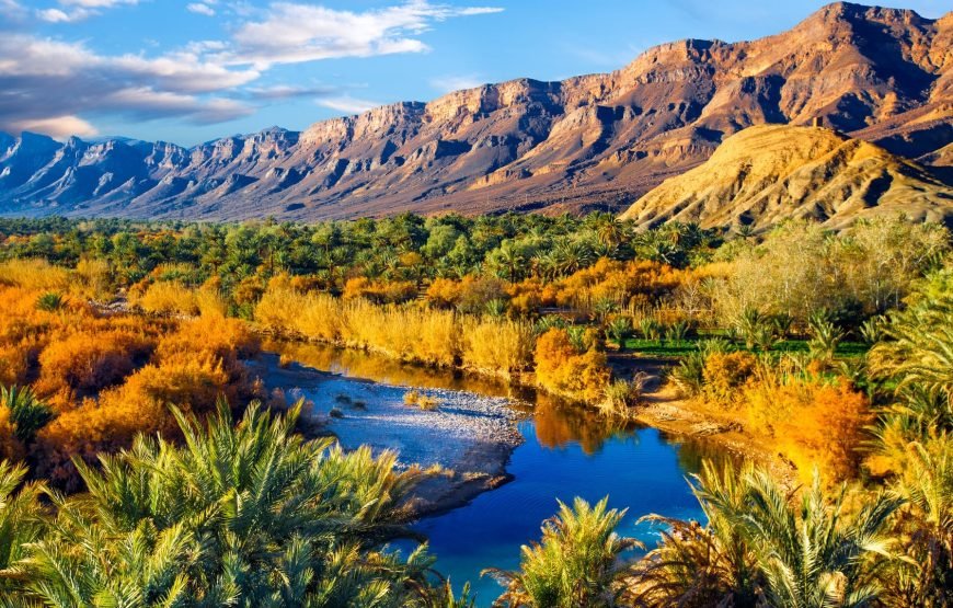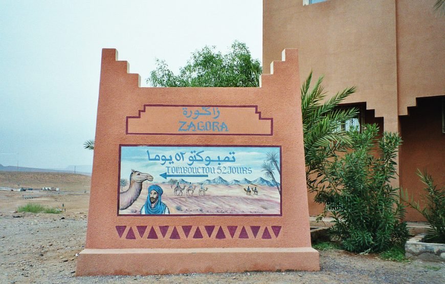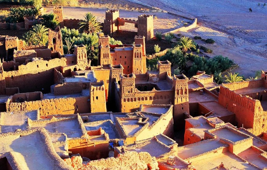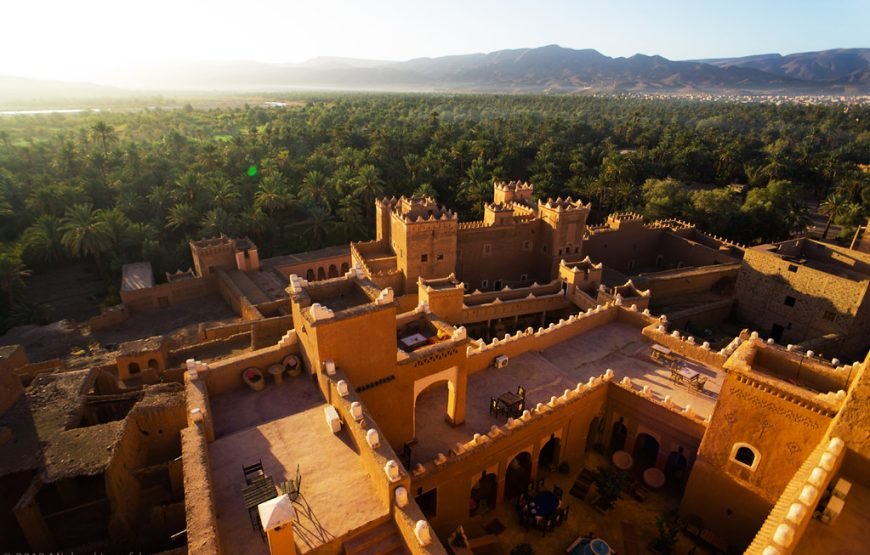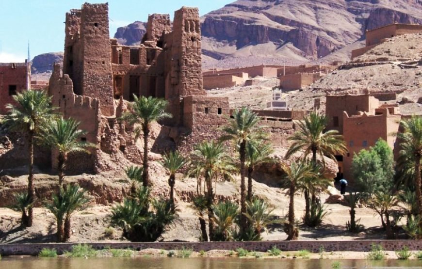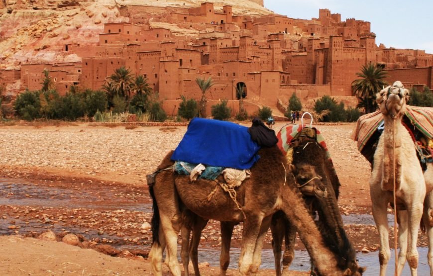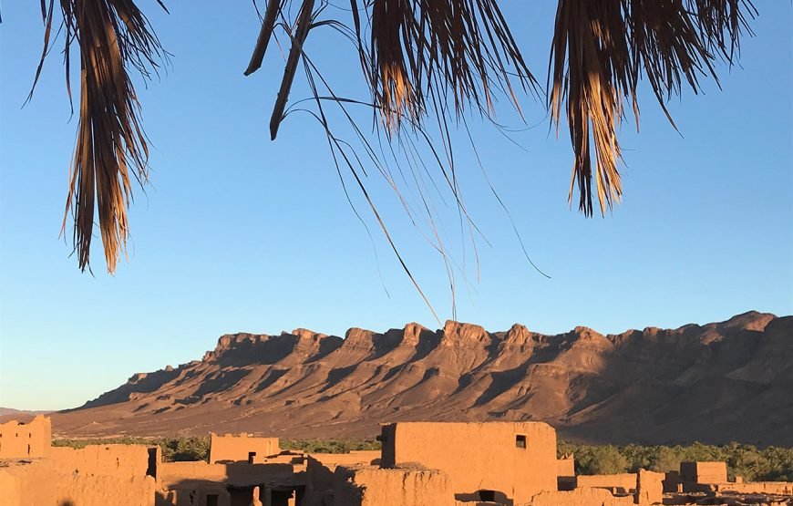 the program will start at 07h00 in Marrakech. First, take the road to the city of Zagora via Ouarzazate. Your first stop is the Citadel of Ait Ben Haddou, where you can visit impressive UNESCO World Heritage sites. The second stop is in the Draa Valley, known for its incredible ksour (castle) and citadel.