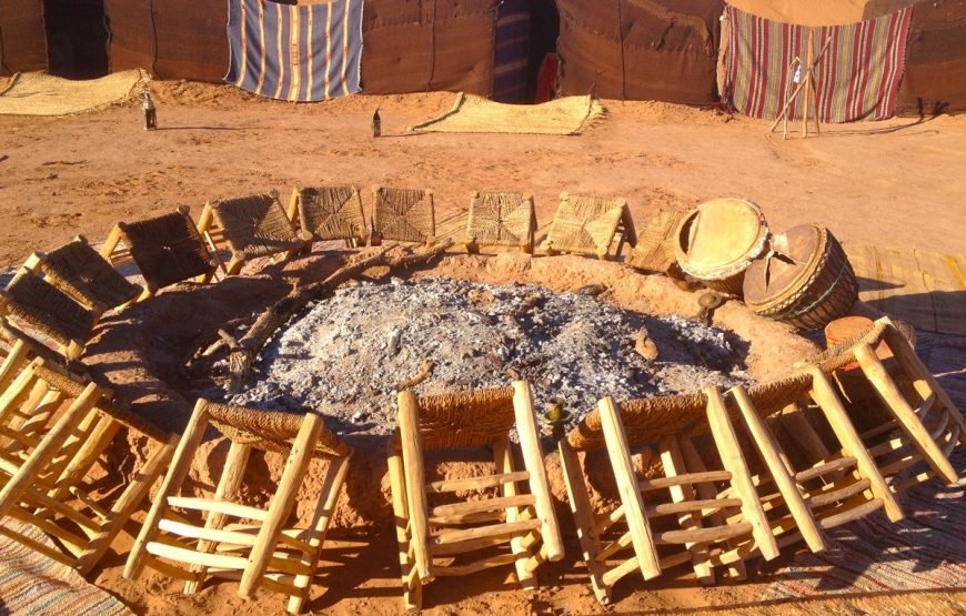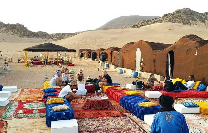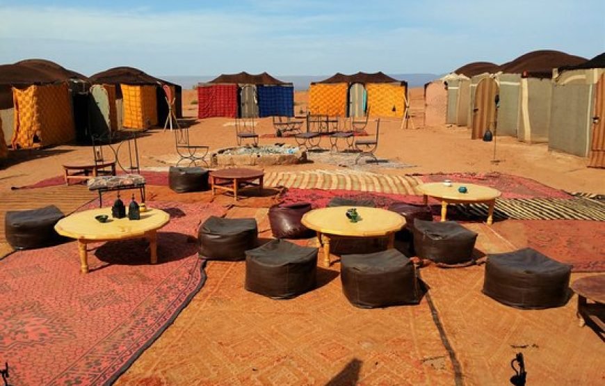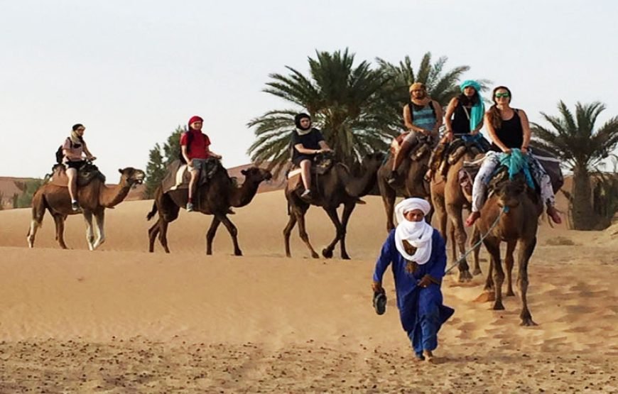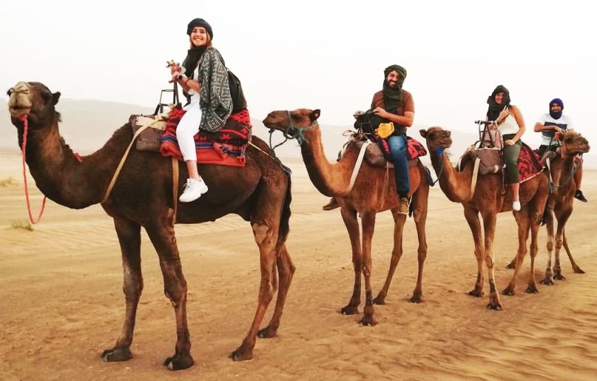 Zagora is a six hour drive from Marrakech. It's a long journey, but you will have the opportunity to experience the beautiful landscapes of Morocco along the way. At the end of the day, arrive in Zagora and enjoy the sunset on a 1-hour camel ride. Finally, enjoy an excellent dinner at a bivouac in the dunes of Zagora.